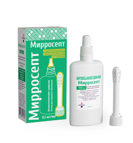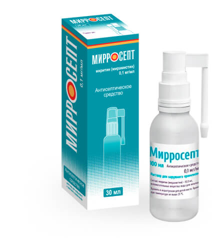 В случае отсутствия положительной динамики (увеличение выраженности или появление новых признаков/симптомов заболевания, возникновение осложнений) на 3-4 день терапии с использованием препарата МИРРОСЕПТ необходимо обратиться к врачу!